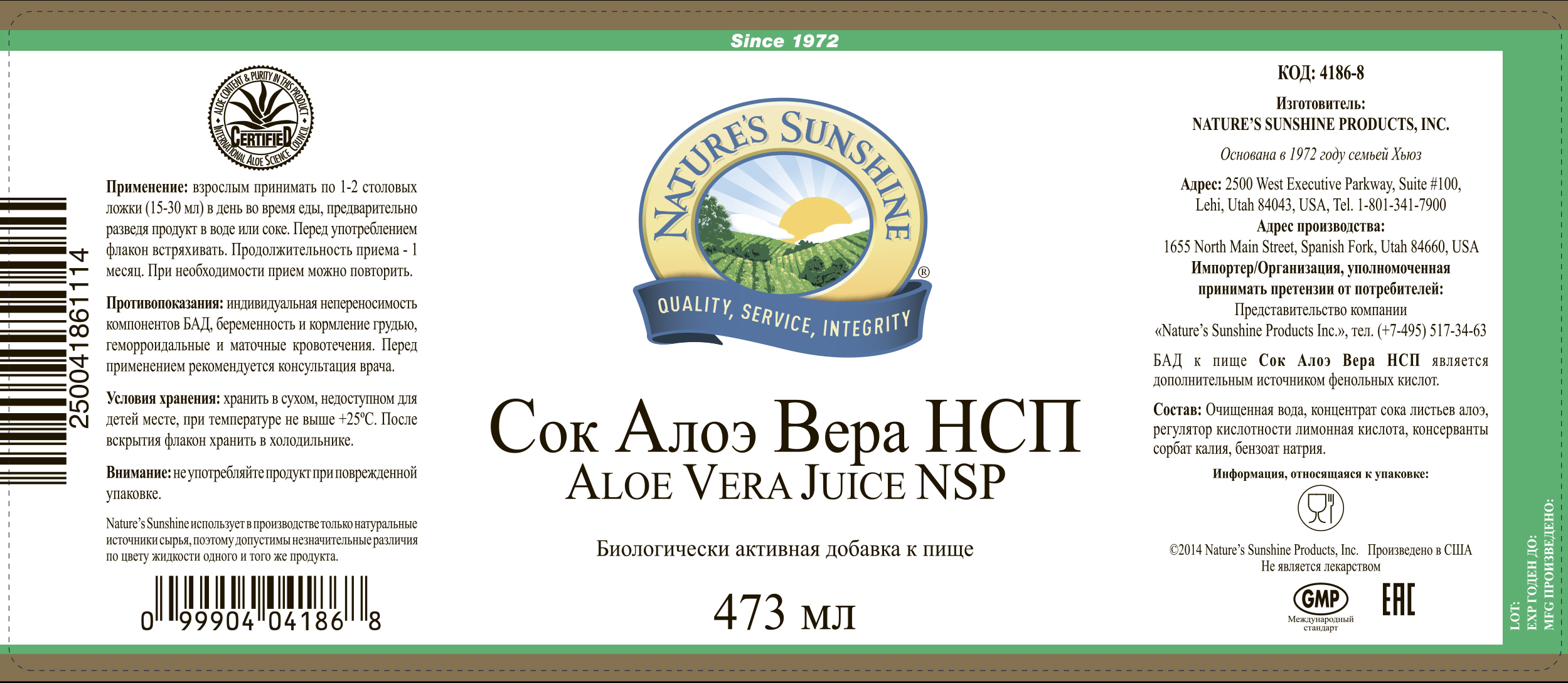 БАД к пище Сок Алоэ Вера HCП является дополнительным источником фенольных кислот.