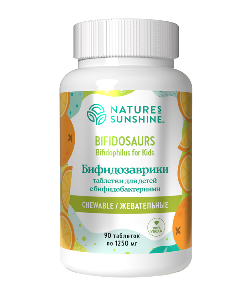 С этой целью в NSP разработана высокоэффективная биодобавка Бифидозаврики. В ней содержится комплекс пребиотиков (питательная среда для роста полезной флоры), а также молочнокислые и бифидобактерии, которые создают в кишечнике условия, неблагоприятные для жизни патогенных микроорганизмов. Очень важно, что добавка содержит те виды бифидо- и лактобактерий, которые необходимы именно детскому организму. В связи с тем, что дети часто плохо глотают капсулы, этот препарат представлен в виде жевательных таблеток с натуральным апельсиновым ароматом.