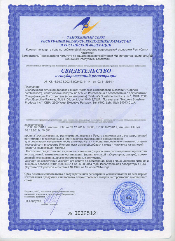 БАД к пище Комплекс с каприловой кислотой является источником каприловой кислоты, содержит танины.