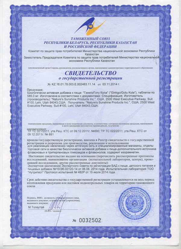 БАД к пище Гинко/Готу Кола является дополнительным источником флавоновых и тритерпеновых гликозидов и флавонолов, содержит изорамнетин.