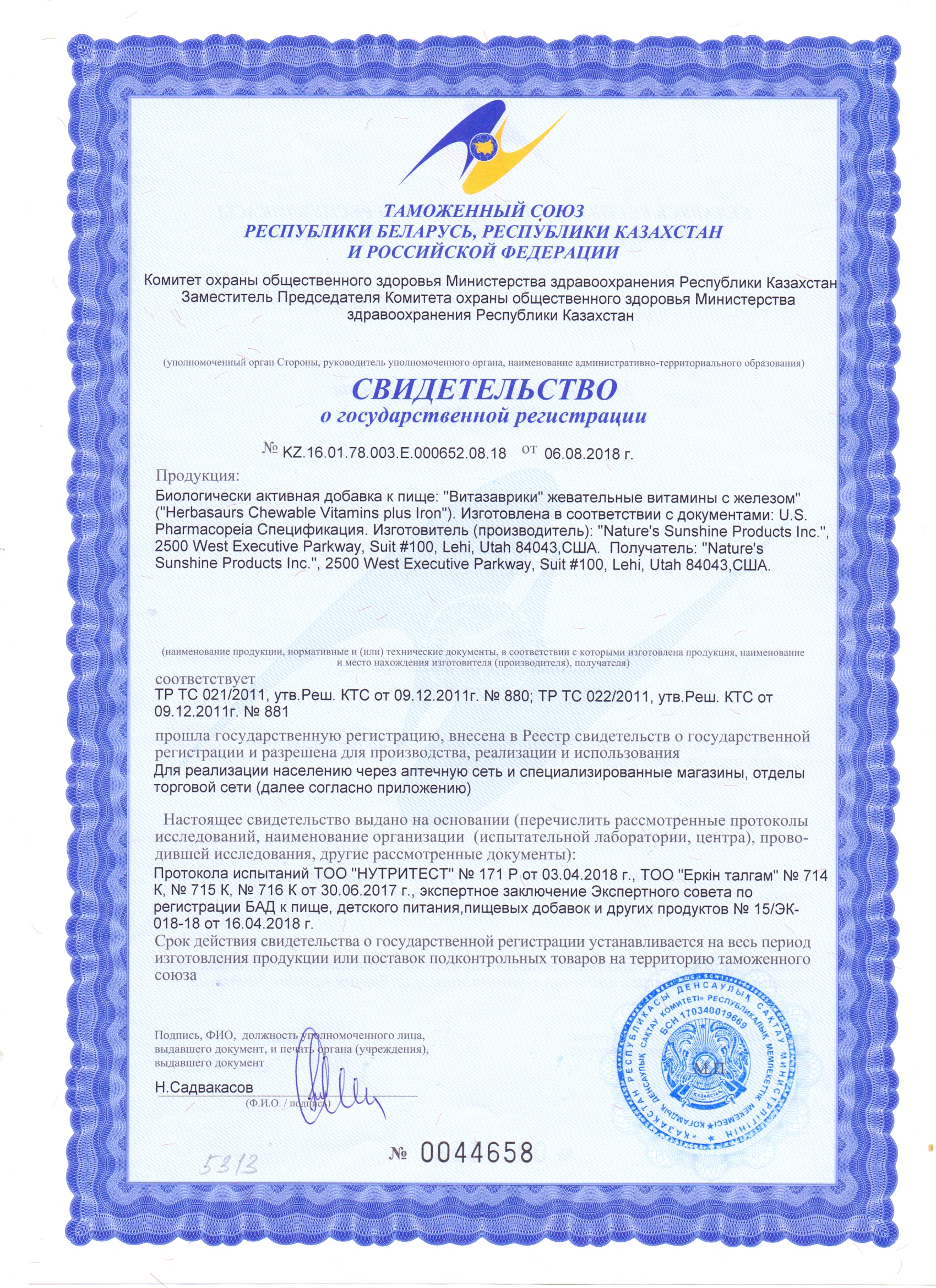 БАД к пище Витазаврики является дополнительным источником витаминов E, D, C, A, B1, B2, B6, B12, PP, фолиевой, пантотеновой кислоты, биотина, железа и флавоноидов.