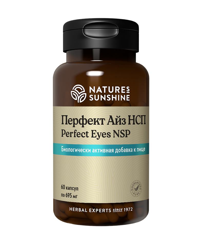 Перфект Айз НСП (англ. идеальные глаза) – это уникальное сочетание питательных компонентов и антиоксидантов, предназначенных для улучшения зрения. Он предотвращает разрушительное действие свободных радикалов, обеспечивает антиоксидатную защиту хрусталику, роговице и сетчатке, а также восстанавливает микроциркуляцию глаза. Перфект Айз НСП является незаменимым компонентом различных программ поддержки зрения. Оказывает иммуномодулирующее и мембранопротекторное действие. Уникальная фито-витаминно-минеральная формула, универсальный антиоксидант. Это наиболее полный и сбалансированный комплекс из представленных на рынке в этом сегменте. Формула создана на основе исследований возрастных расстройств зрения AREDS